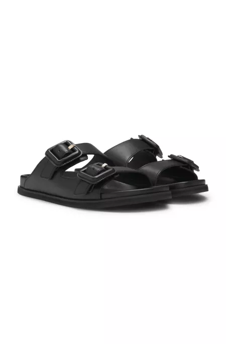 Mules en cuir avec deux brides à boucles
