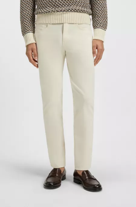 Pantalon coupe moderne en gabardine de coton stretch