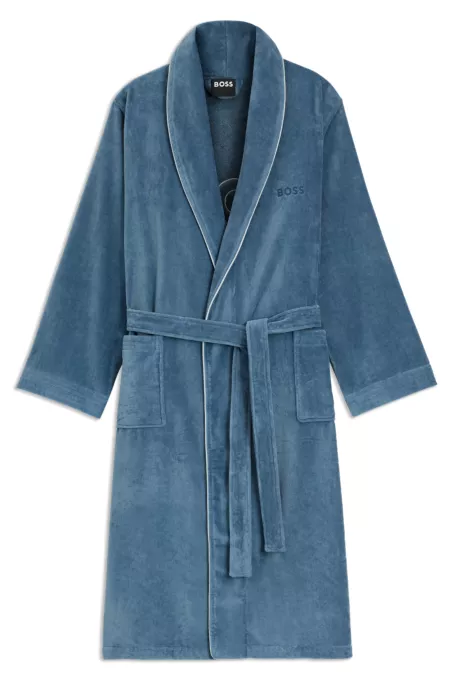 Peignoir en coton avec passepoil et logo brodé