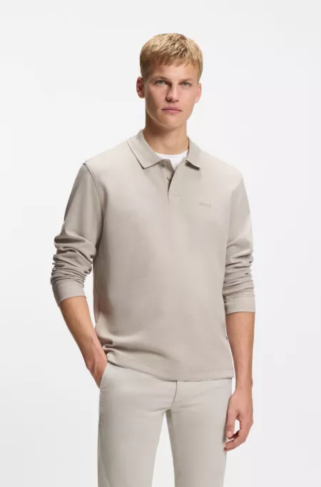 Polo à manches longues en coton interlock avec logo