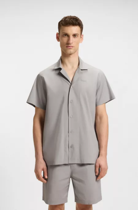 Short de pyjama en coton mélangé avec logo brodé