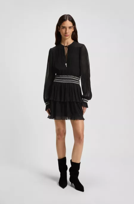 Robe près du corps en crêpe côtelé à effets transparents et unis