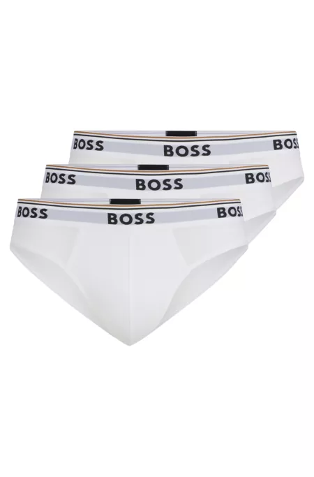 Trois slips HUGO Homme taille basse essentiels. Confectionnés en coton stretch pour un confort au quotidien. Tailles en jacquard ornées de logos répétés.