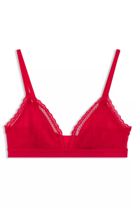 Soutien-gorge avec bordure en dentelle et étiquette logotée rouge