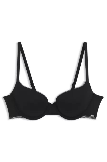 Orné de jolis empiècements en dentelle et de finitions picots, ce soutien-gorge à armatures BOSS Femme est une pièce élégante idéale au quotidien. Microfibre respirante. Logo doré.