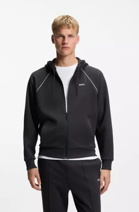 Sweat à capuche zippé en coton mélangé à détails passepoilés