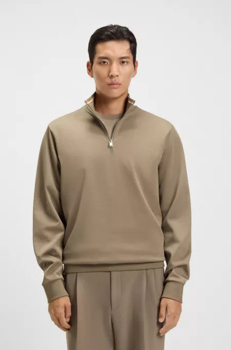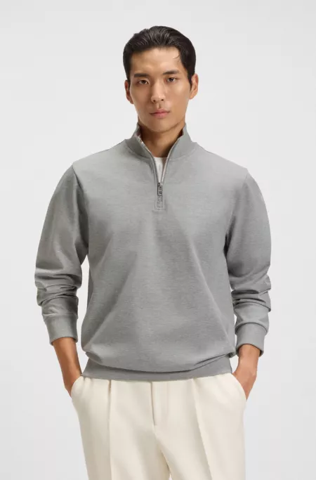 Sweat en coton mélangé peau de pêche à encolure zippée