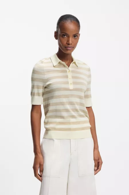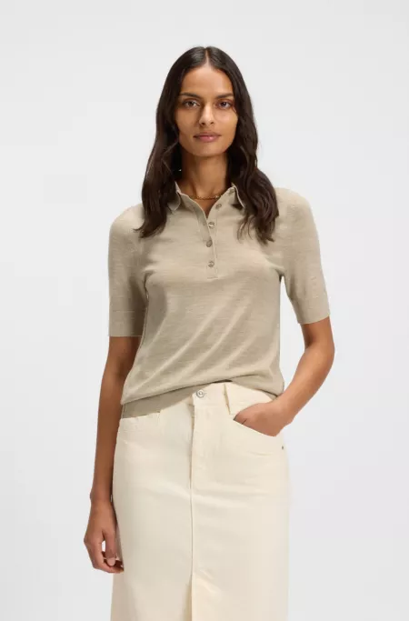 Short-sleeved sweater in merino wool with polo collar