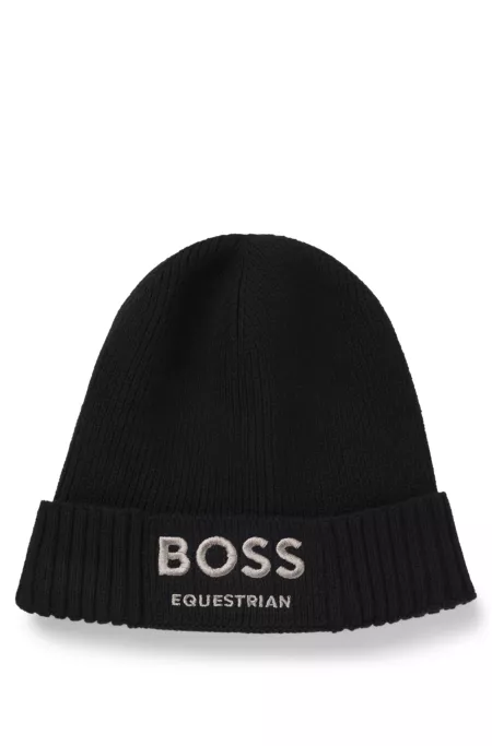 Equestrian ribbed beanie hat with embroidered logo