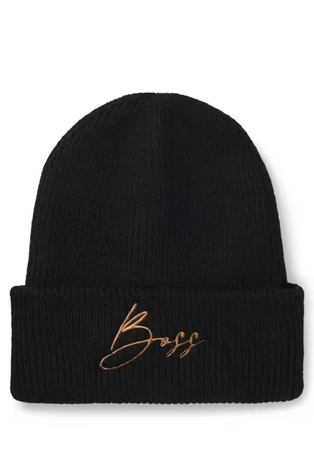 Virgin-wool beanie hat with stacked-logo badge