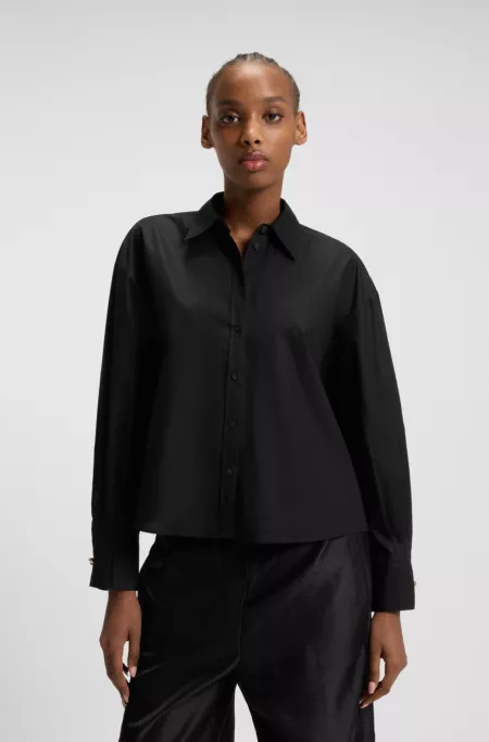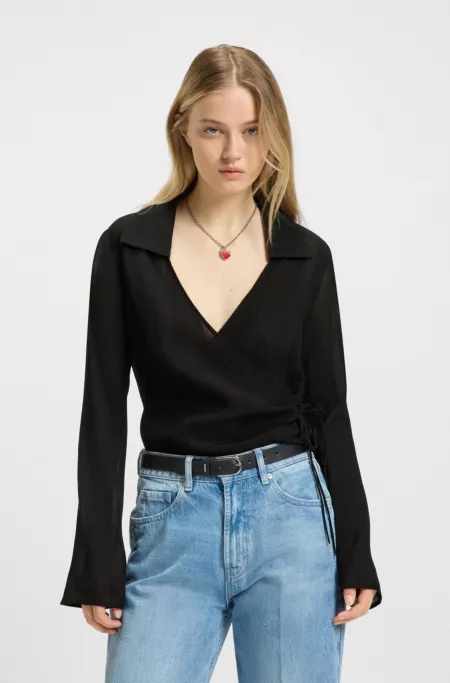 (17)Black blouses are an essential wardrobe staple that can effortlessly transition from day to night. Whether featuring intricate lace details, classic silk finishes, or simple button-up designs, these blouses pair with jeans, skirts, or tailored trousers for a sleek, sophisticated look. Discover HUGO BOSS black blouses designed for every occasion, with elegant cuts and refined fabrics.