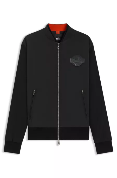 Oversized-fit cotton bomber jacket with collegiate logo embroidery