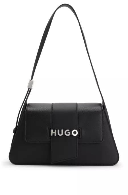 Grained faux-leather shoulder bag with stacked-logo hardware