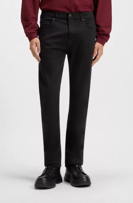 Versatile jeans with an ultra black finish by HUGO. Crafted in stretch denim, this regular rise pair is cut to a slim fit with a straight leg.