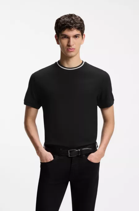 Cotton-piqué T-shirt with striped collar