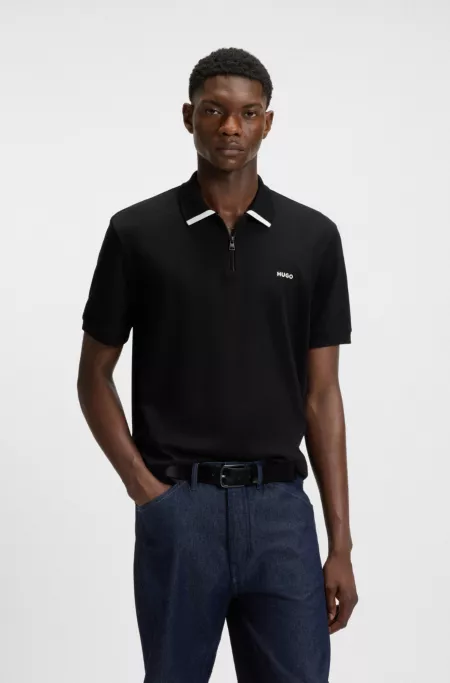 A sporty polo shirt by HUGO Menswear, cut to a regular fit in cotton piqué with a zipped placket and contrast logo.
