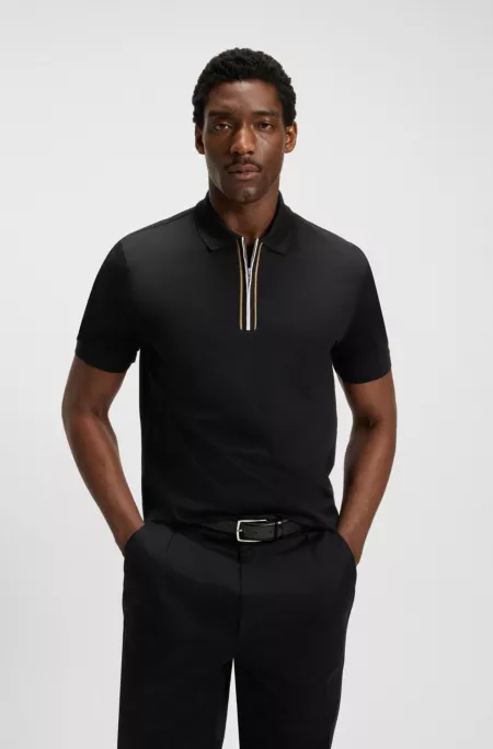 With its textured collar edge and clean zip, this BOSS Menswear polo shirt is brimming with detail. Straight fit. Mercerised cotton blend.