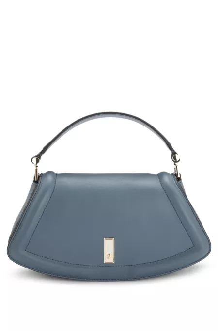 With luxe gold-tone trimmings, this BOSS Womenswear bag has a distinctive shape in rich leather. Double B monogram on the closure. Measurements: 25. 5 x 14 x 6cm