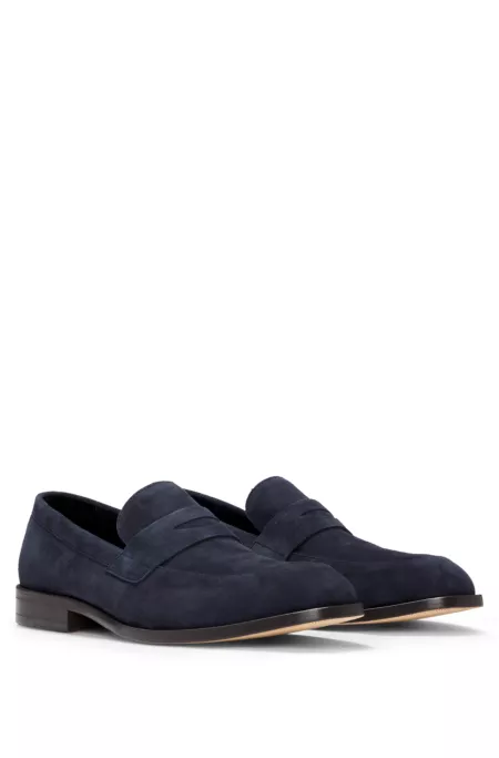Set on a flexible outsole for elevated comfort, these BOSS Menswear loafers are an everyday must. Soft suede with a clean penny trim.
