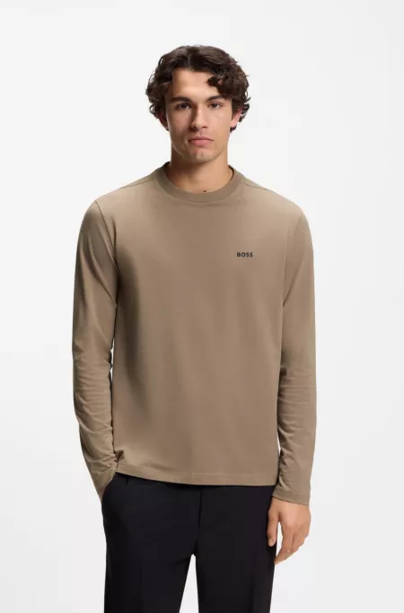 In a casual straight fit for layering, this long-sleeved BOSS Menswear T-shirt is simply detailed with a contrast logo. Cotton with stretch for comfort.