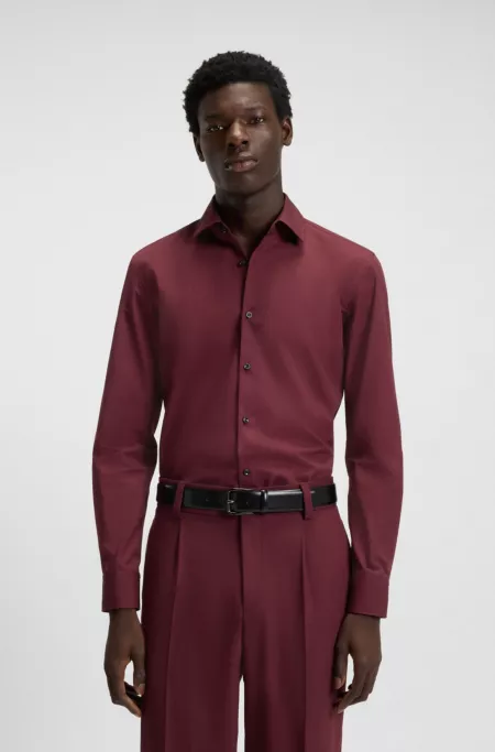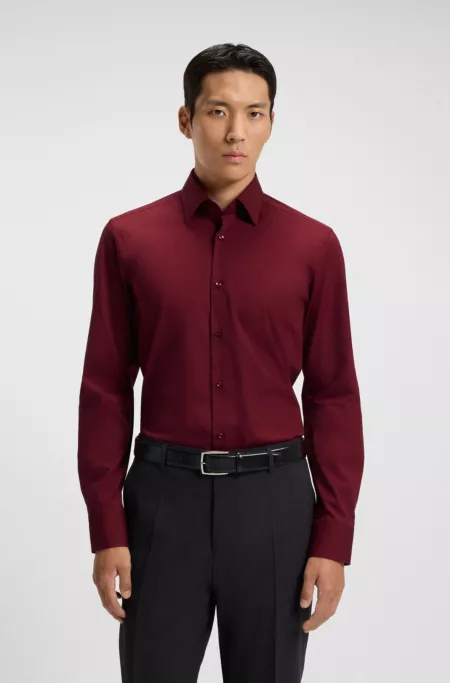 Slim-fit shirt in easy-iron stretch-cotton poplin