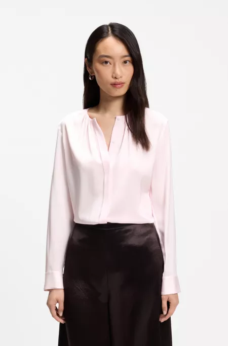 Regular-fit blouse in sandwashed silk with adjustable cuffs