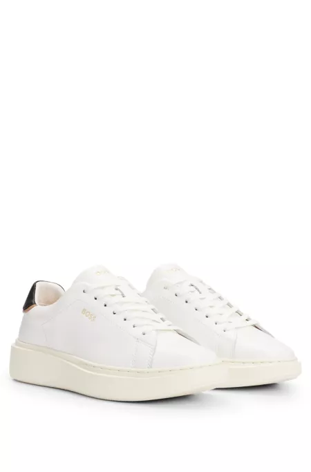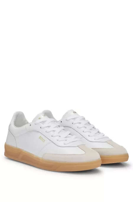 (7) Step into style with HUGO BOSS canvas trainers, crafted for the stylish modern wardrobe. Our collection includes iconic designs in both low-top and high-top trainers, perfect for any casual occasion. Choose from versatile lace-up styles or effortless slip-ons, each made with premium materials as organic cotton or leather and suede for comfort and sustainability. Pair our skate shoes with cargo trousers or dark blue jeans for a relaxed, contemporary look. Add a flannel shirt or a herringbone jacket to elevate your ensemble with a touch of sophistication. With HUGO BOSS canvas trainers, embrace a blend of style, comfort, and timeless design in every step.