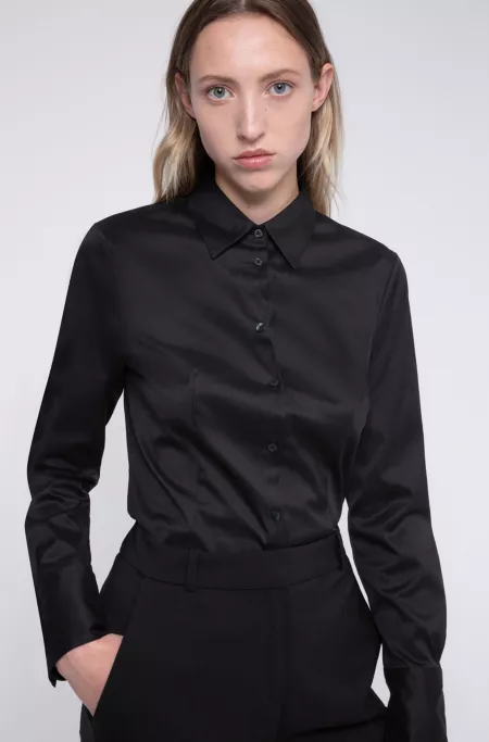 Oversized-fit blouse in cotton canvas with embroidered logo