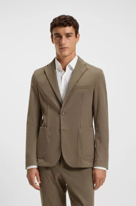 (8)Corduroy jackets stand out as a bold fashion statement known for their unique corduroy texture and structured fit, these jackets from the HUGO BOSS jackets collection redefine style with ribbed trims and a classic collar. Pick your favourite from a corduroy jacket with a front button closure or a functional jacket with multiple pockets, both practical for the modern busy men and women. Pair your corduroy jacket with a half-zip polo shirt and canvas trousers for a polished look, or opt for a polo jumper and dark blue sneakers for a more casual ensemble. Add a black beanie and wool scarf for extra warmth and style. Perfect for layering, these jackets are versatile enough to transition between seasons while maintaining a chic appearance.