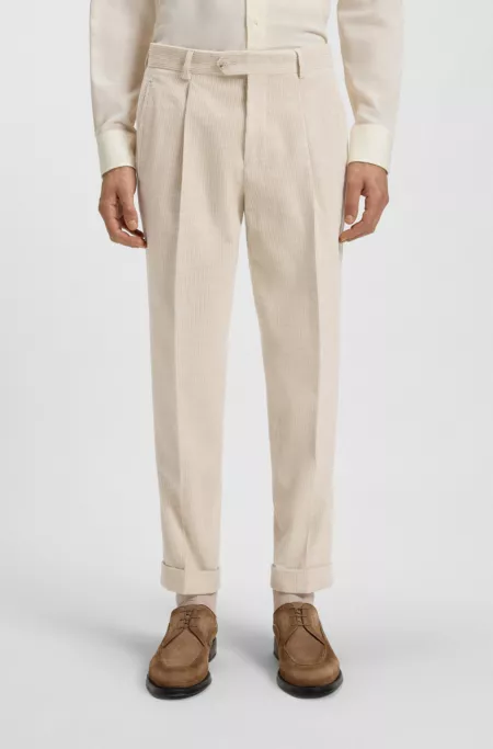 (8)Corduroy trousers bring a touch of texture and sophistication to your casual and semi-formal outfits. Their unique fabric provides warmth and comfort, making them a perfect choice for the cooler months. Explore HUGO BOSS corduroy trousers, designed with a modern fit and tailored cuts to ensure both style and functionality for any occasion.