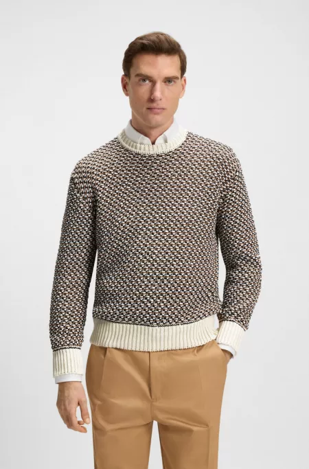 Cotton sweater with rich knitted structure