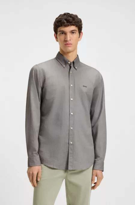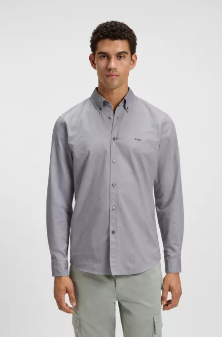 A versatile shirt by BOSS Menswear, crafted in washed Oxford cotton. Regular fit. Button-down collar and embroidered branding. Wear alone or as a layer.