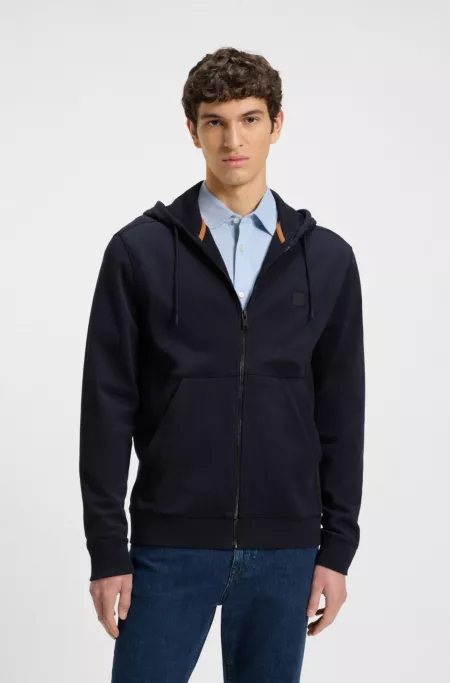 Quarter-zip cotton-terry sweatshirt with logo patch