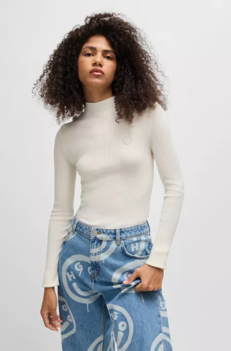 Mock-neck sweater with embroidered Happy HUGO logo