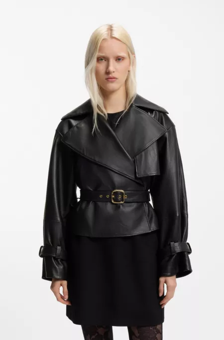 Relaxed-fit short-length trench coat in leather