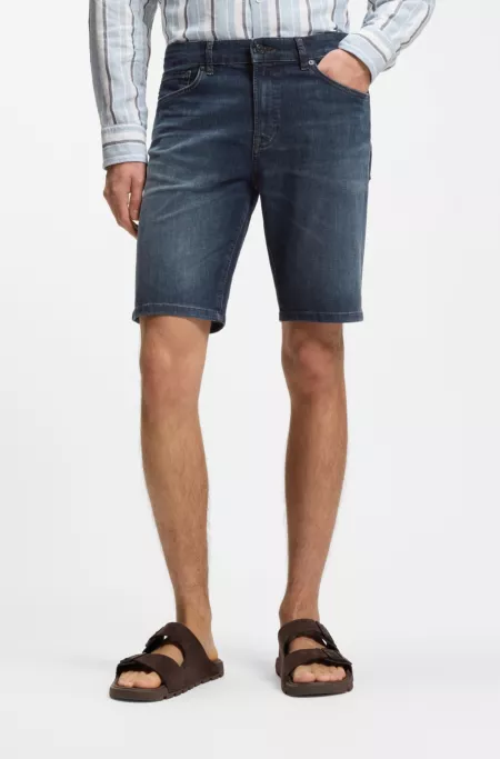 Tapered-fit shorts in bright-blue stretch denim