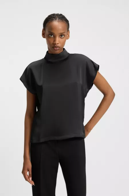 Stretch-cotton top with rhinestone Happy HUGO logo