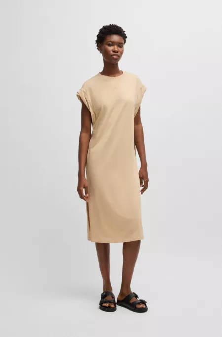 Cotton-jersey T-shirt dress with Happy HUGO logo