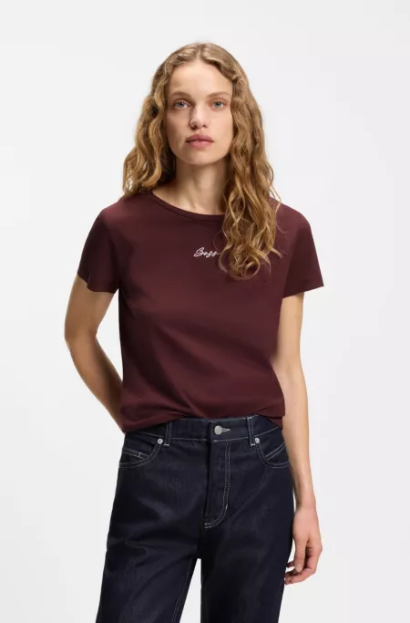 Regular-fit T-shirt with stacked-logo embroidery