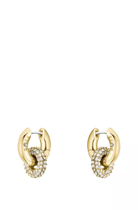 Gold-tone earrings with intertwining hoops and pavé crystals