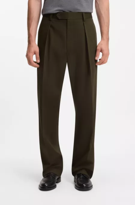 (31)Green trousers offer a fresh and vibrant take on traditional styles. Perfect for a smart-casual look or a relaxed outfit, green trousers pair well with both casual and formal tops. Explore HUGO BOSS green trousers that provide a modern twist on your go-to wardrobe essentials, combining comfort and contemporary style.
