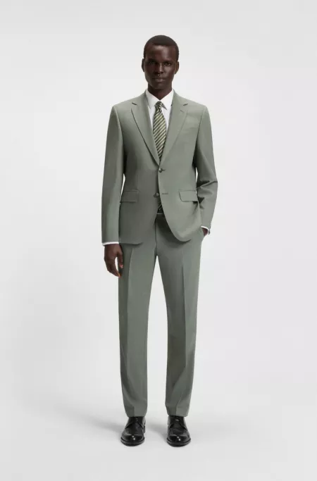 (12)A green wool suit offers a distinctive, refreshing alternative to more traditional suiting options. Perfect for both business and special occasions, it provides a sophisticated look with an added touch of personality. Discover HUGO BOSS green wool suits, crafted from the finest wool to ensure both comfort and style, with a modern cut and impeccable finish.