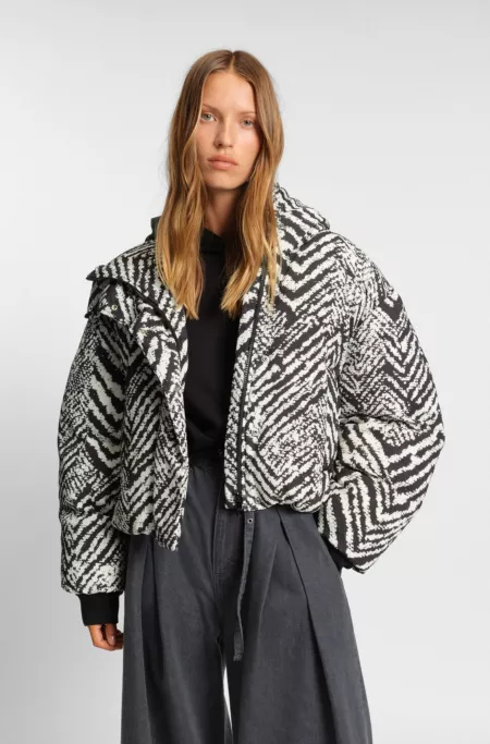 Stay protected in statement style with the jacquard-effect herringbone print of this padded BOSS Womenswear jacket. Straight fit. Water-repellent finish.