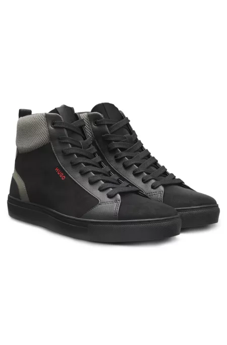 High-top trainers with mesh and faux suede