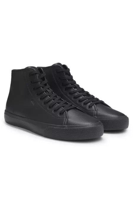Faux-leather high-top trainers with grained texture