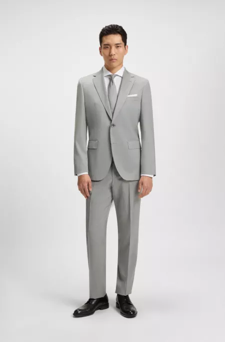 Two-piece slim-fit suit in a patterned wool-silk blend
