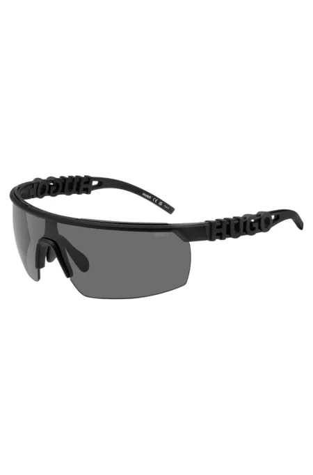 Mask-style sunglasses in black with 3D-logo temples