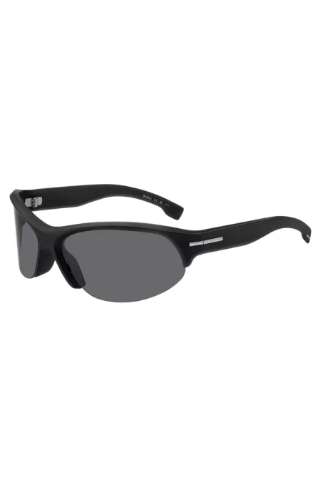 Mask-style sunglasses in black with silver-tone hardware