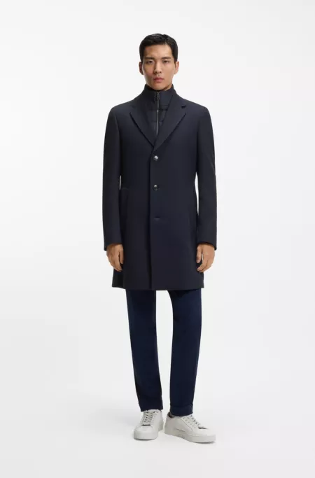 Crafted in a water-repellent wool blend with a herringbone pattern, this BOSS Menswear coat is a trans-seasonal essential. Slim fit. Detachable zipped inner.