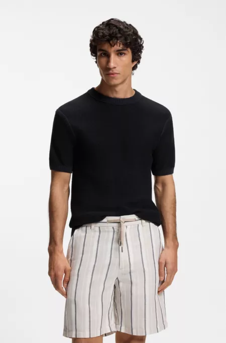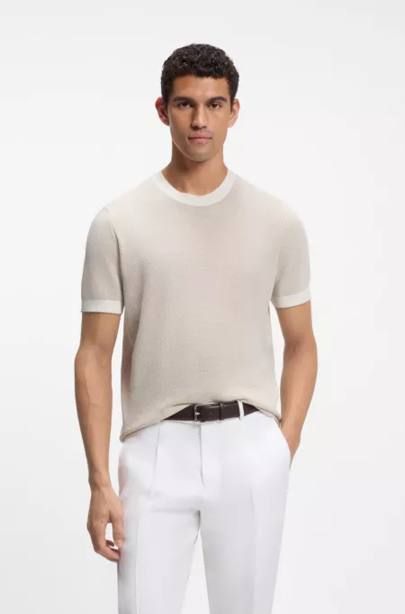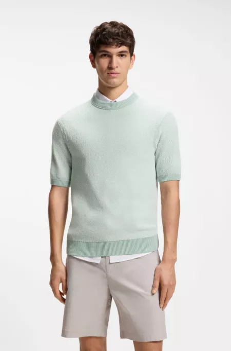 Short-sleeved structured-knit sweater in silk and cotton